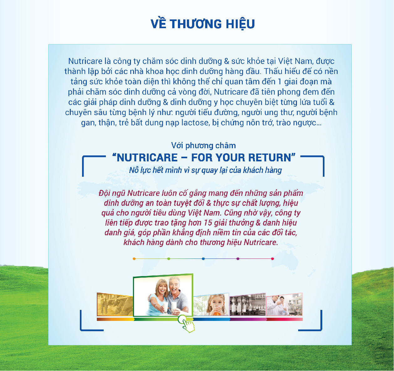 - Cải thiện tiêu hóa, miễn dịch: Bổ sung 5 loại Nucleotides, tăng hàm lượng Colostrum cùng hệ Antioxidant & Kẽm, hỗ trợ hệ miễn dịch & phòng các bệnh nhiễm khuẩn thông thường. Dồi dào chất xơ FOS & Inulin giúp cải thiện hấp thu & tránh táo bón. Sản phẩm được sản xuất bởi Công ty Cổ phần Dinh dưỡng Nutricare - Công ty đạt giải thượng THƯƠNG HIỆU QUỐC GIA 2018 về thực phẩm dinh dưỡng Y Học. Sữa mẹ là thức ăn tốt nhất cho sức khỏe và sự phát triển toàn diện của trẻ nhỏ Lưu ý: Sản phẩm không phải là thuốc và không có tác dụng thay thế thuốc chữa bệnh