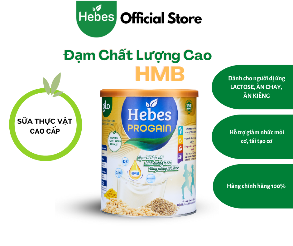 ✨Sữa bột thực vật cao cấp từ hạt 'siêu thực phẩm' Hebes Progain HMB dành cho người nhức mỏi cơ 800g