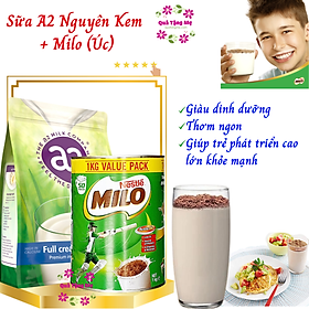Combo Sữa Bột A2 Nguyên Kem (1kg) và Milo Úc (1kg) giúp mang đến cùng lúc hai sản phẩm nổi tiếng của “xứ sở chuột túi”. Bạn có thể dùng riêng lẻ A2 và Milo theo cách truyền thống, hoặc kết hợp cả hai để tạo ra thức uống ưa thích cho bé.