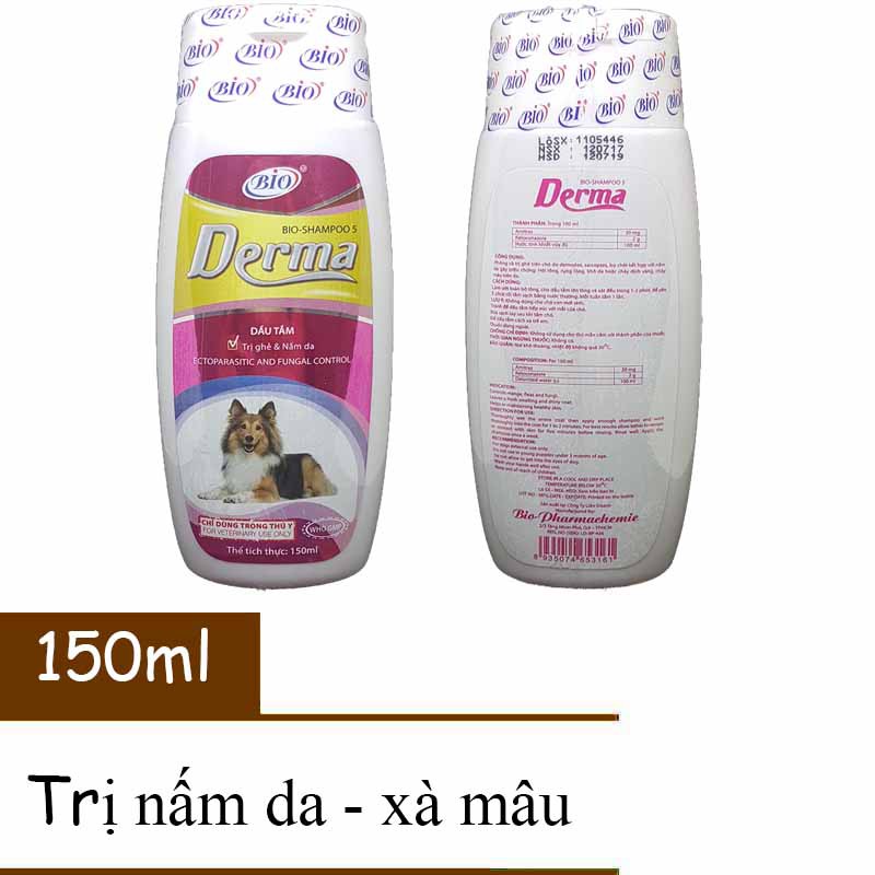 Bio Derma - Sữa tắm Ngừa Ghẻ, Nấm Da, Xà Mâu, Bệnh Ngoài Da Cho CHÓ CÔNG DỤNG: Giúp giải quyết ghẻ do Demodex, Sarcoptes, Bọ Chét kết hợp với Nấm da gây triệu chứng: Hôi lông, rụng lông, khô da hoặc chảy dịch vàng, chảy máu trên da. CÁCH DÙNG Làm ướt toàn bộ lông Cho dầu tắm lên lông và xát đều trong 1-2 phút Để yên 5 phút rồi tắm sạch bằng nước thường. Mỗi tuần tắm 1 lần. ️️ LƯU Ý: Không dùng cho chó dưới 45 ngày tuổi. Tránh để dầu tắm tiếp xúc với mắt của chó. Rửa sạch tay sau khi tắm cho chó. Sản phẩm chỉ dùng ngoài da.