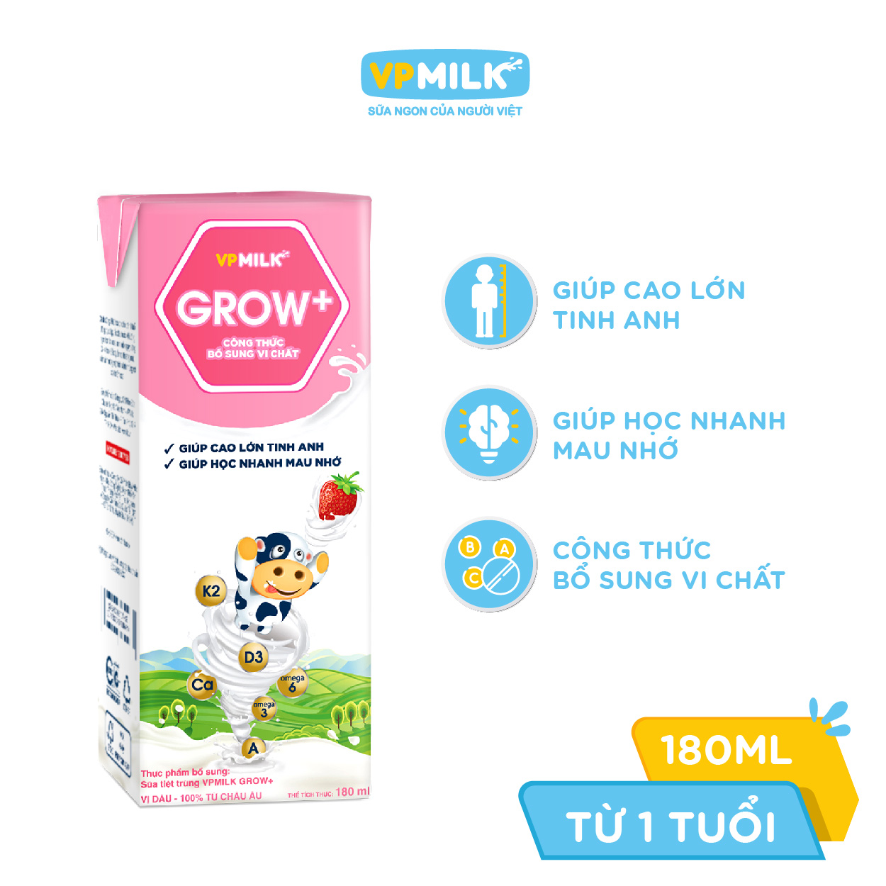 Sữa tiệt trùng Vpmilk Grow+vị dâu(180ml)|Free Ship Toàn Quốc 🚙
