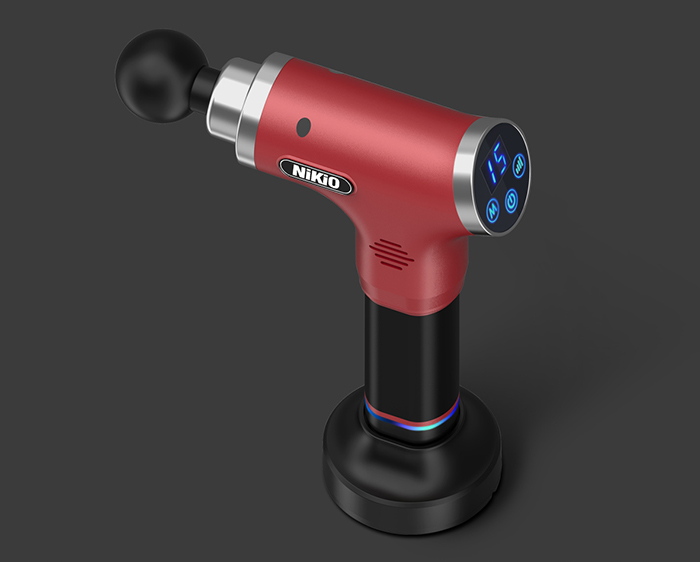 Súng massage gun cầm tay 4 đầu, 6 tốc độ Nhật Bản Nikio NK-170A - Màu đỏ đô - Đánh bay mọi cơn đau nhức mỏi, căng cơ hiệu quả Súng massage gun cầm tay