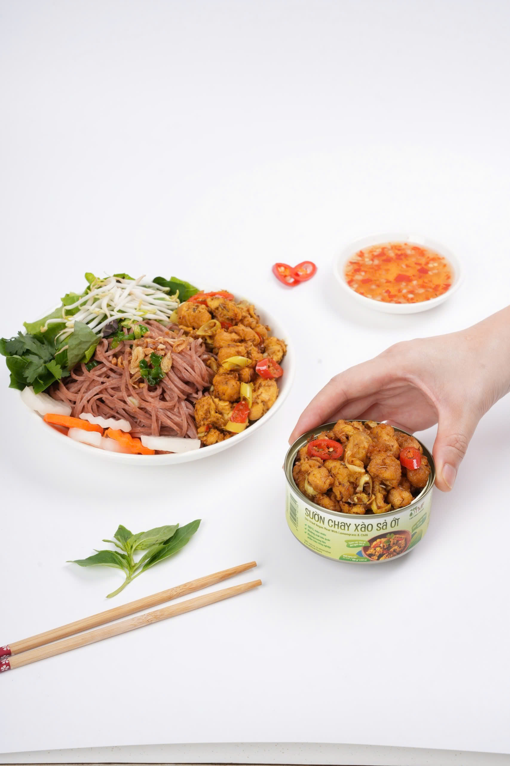 Khách mê tít Sườn Chay Xào Sả Ớt đóng hộp, mở nắp là có ngay bữa cơm chay ngon! 🌱 #shorts
