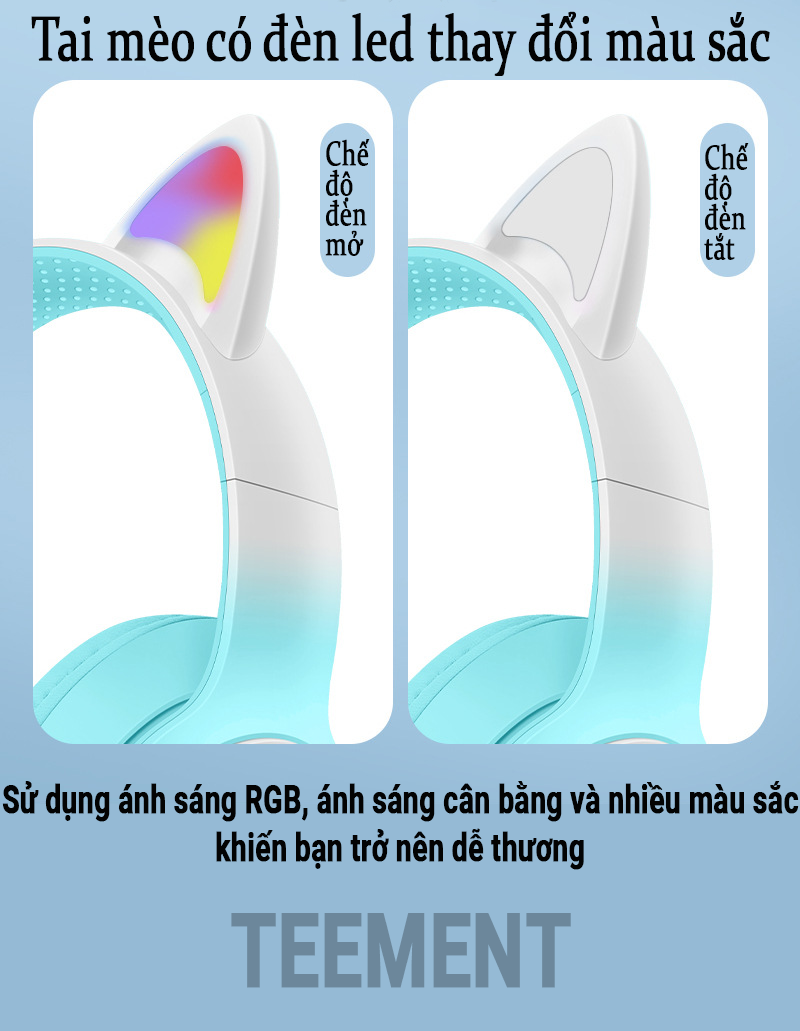 Tai Nghe Bluetooth Tai Mèo Phát Sáng Teement, Tai Nghe Không Dây, Tai Nghe Chụp Tai Bluetooth 5.3, Đèn Led Và Âm Bass Mạnh Mẽ -hàng Chính Hãng Mô tả sản phẩm Tai nghe