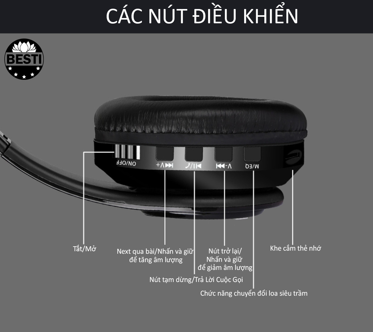 • Màng Loa lớn 40mm với thiết kế phức tạp.