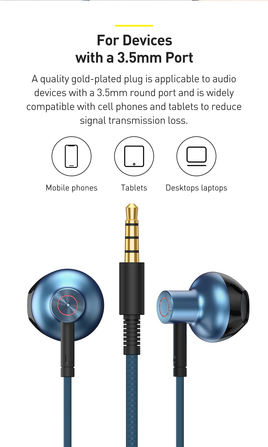 Sản phẩm tai nghe có dây Baseus Encok H06 - Hỗ trợ hiệu ứng âm thanh vòm 8D với 8 lõi âm thanh nổi - Bộ dây 14.2mm cho âm thanh tự nhiền với những
