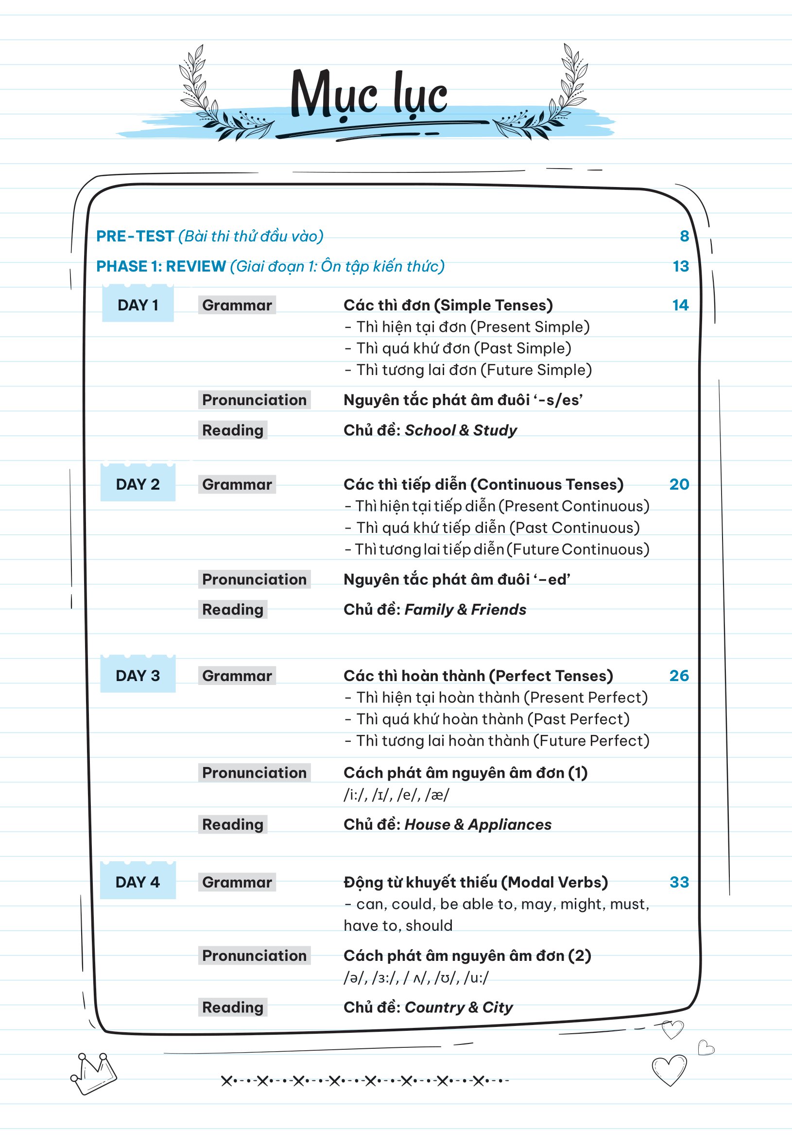 Sách được thiết kế theo cấu trúc đi từ lý thuyết đến thực hành. Theo từng đơn vị bài học, từ vựng và ngữ pháp được tổng hợp đầy đủ và cô đọng do vậy