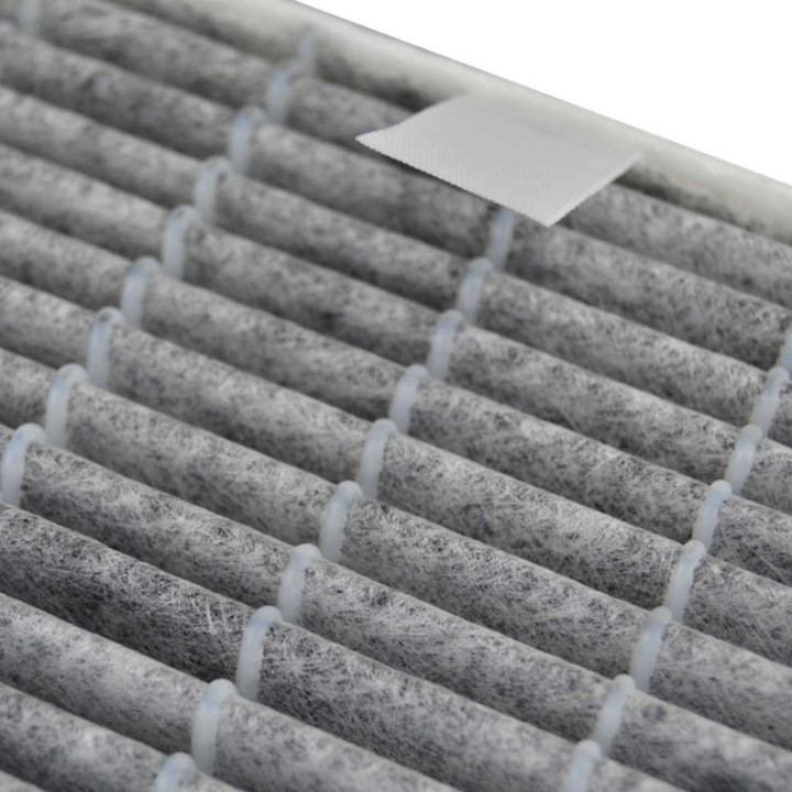 - Tấm lọc giúp giảm lượng hơi TVOC xuống còn 0.01mg/m3 trong không khí nhờ vào than dừa hoạt tính trong tấm lọc Loại bỏ hiệu quả các khí độc hại