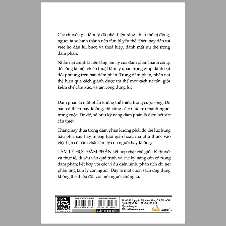 Tâm lý học đàm phán kết hợp chặt chẽ giữa lý thuyết và thực tế, đi sâu vào quá trình và các kỹ năng cần có trong đàm phán; kết hợp với các ví dụ điển hình, phân tích chi tiết phản ứng tâm lý con người. Đây là một cuốn sách ứng dụng không thể thiếu đối với mỗi người chúng ta.