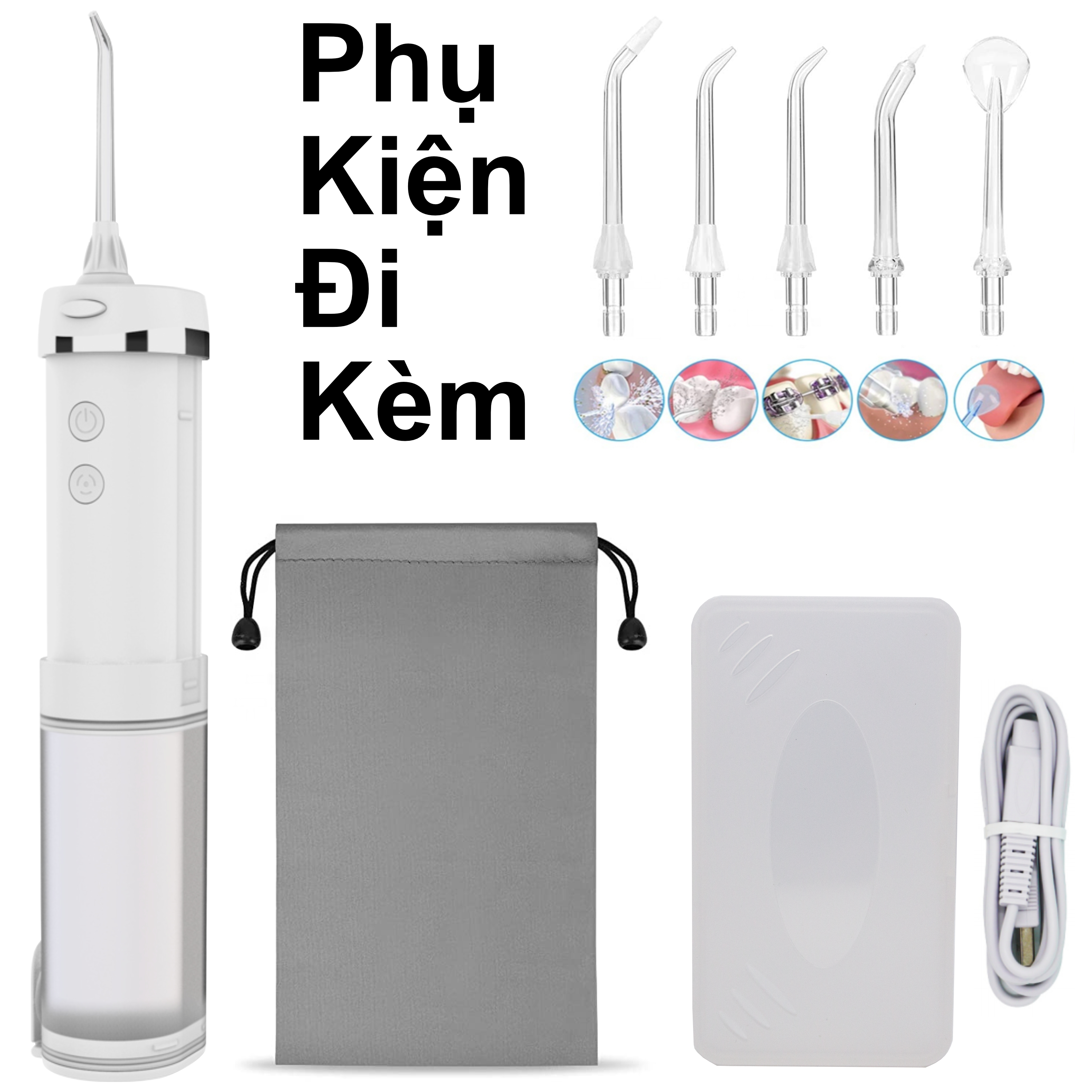 Máy tăm nước dùng trong gia đình Dung tích bình chứa nước 600ml Điện áp 100-240V Tần số 50/60Hz Công suất 18W Gồm 6 đầu tăm 10 mức áp lực nước