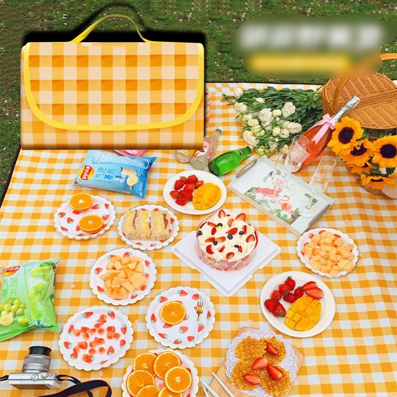-Tấm thảm du lịch dã ngoại gấp gọn , bạt cắm trại cao cấp chống nước ,họa tiết caro màu sắc tươi mới , trang trí nhã nhặn xinh xắn có thể trải làm thảm