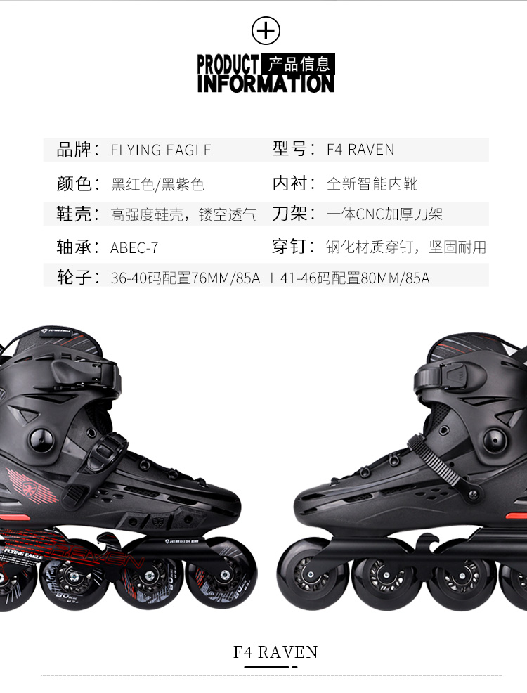 ✨[Tặng Bảo Hộ Chuyên Dụng] Giày Patin Người Lớn Flying Eagle F4 Raven Với 2 Màu Đen Và Tím
