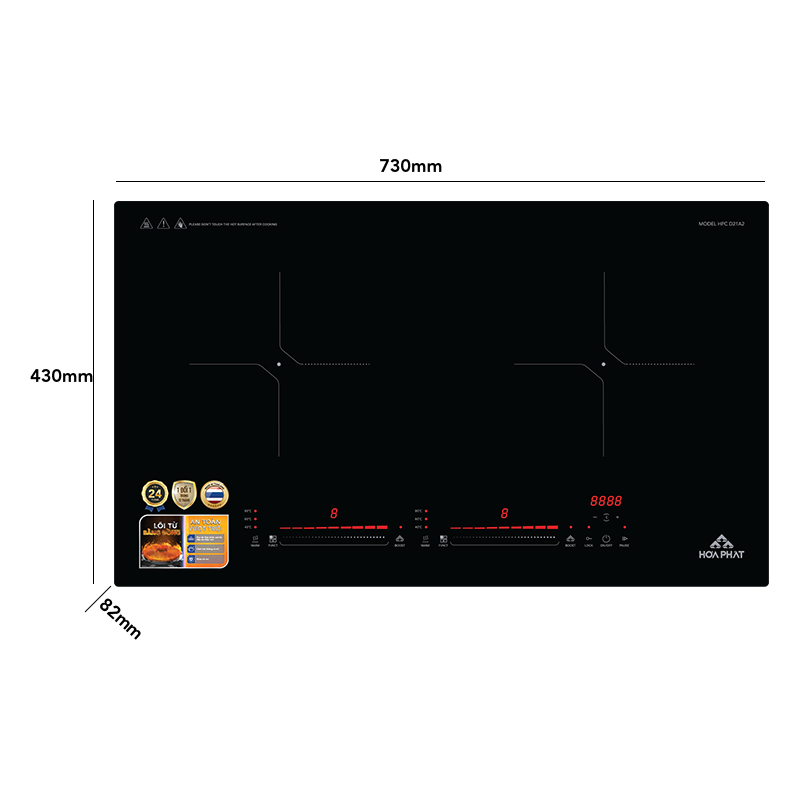 - Kích thước bếp: 730x430x82(mm)