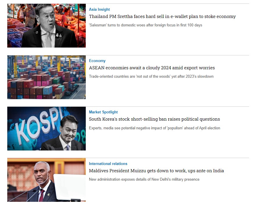 Nikkei Asia là tạp chí tiếng Anh có tên tuổi thuộc tập đoàn Nikkei - Nhật Bản, chuyên viết về những xu hướng kinh tế, công nghệ, chính trị của các nước trong khu vực châu Á - Thái Bình Dương gồm có Việt Nam. Ngoài ra còn cung cấp các phân tích từ chuyên gia, nhà báo về đời sống và văn hóa các nước châu Á. (Trending, Business, Markets,Tech, Politics, Economy, Features, Opinion, Life & Arts).