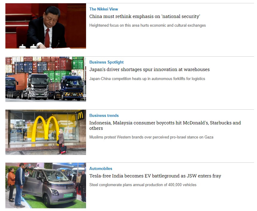 Mỗi tuần, Nikkei Asia xuất bản hơn 16,000 ấn phẩm đến tay độc giả của 30 quốc gia. Nikkei là thương hiệu báo tài chính uy tín và lớn nhất thế giới, mỗi ngày tại Nhật Bản phát hành 4 triệu bản. Tập đoàn còn sở hữu các đầu báo uy tín khác như Financial Times, Dealstreet Asia,