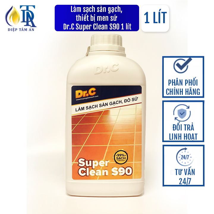 *CÔNG DỤNG: Tẩy Bồn Cầu Bị Ố Vàng,Tẩy Gạch Men,Tẩy Xi Măng,Nước Tẩy Nhà Vệ Sinh,Tẩy Rong Rêu Vôi Vữa Dr.C Super Clean S90 1 Lít, làm sạch nhanh và mạnh các vết bẩn cứng đầu bám trên bề mặt như:-Tẩy xi...