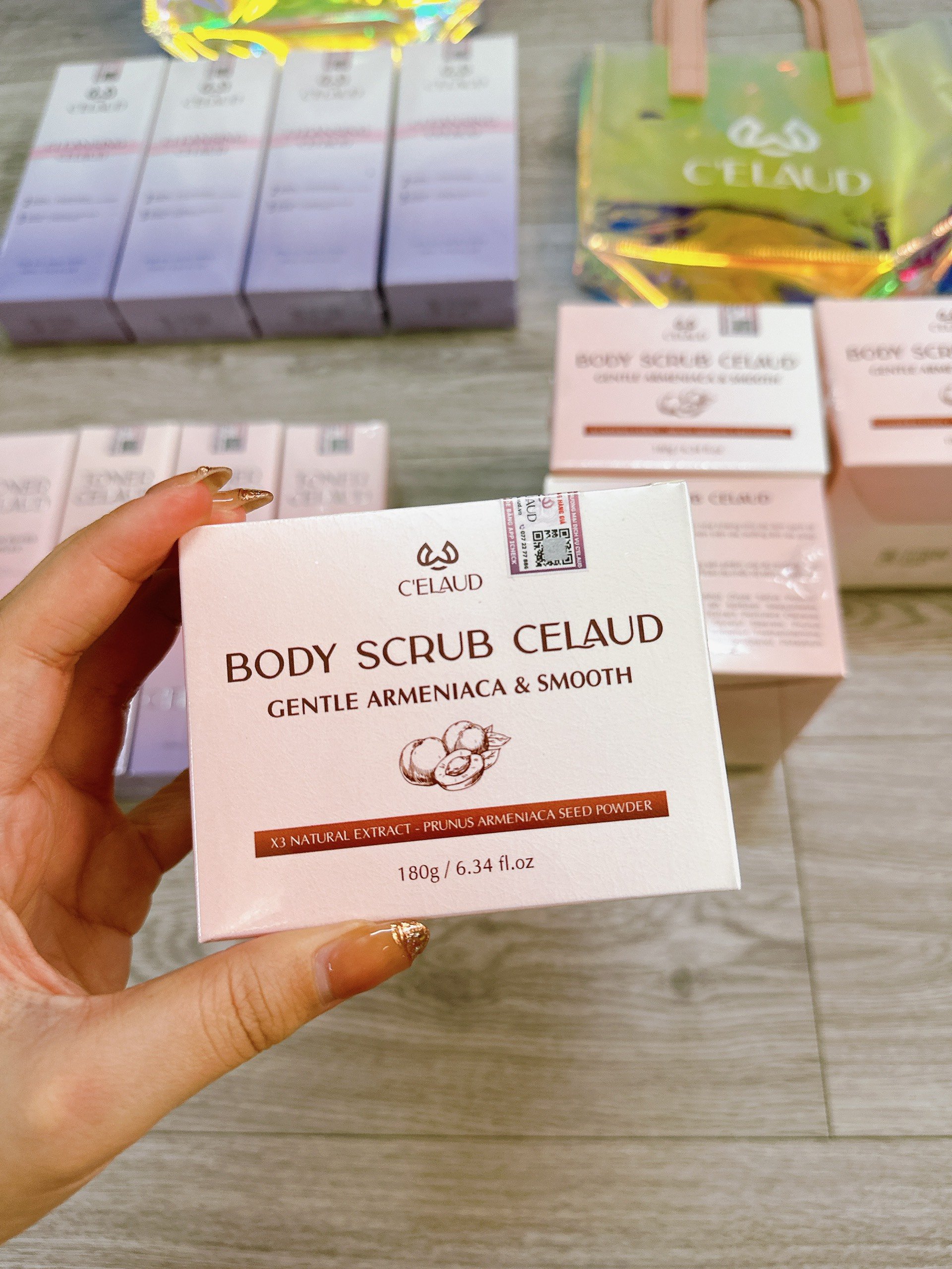 Tẩy Tế Bào Chết Làm Mịn Da Body Scrub Celaud 180g Sản phẩm tẩy tế bào chết BODY SCRUB CELAUD của thương hiệu C'ELAUD được áp dụng công nghệ Mask & Scrub kết hợp các