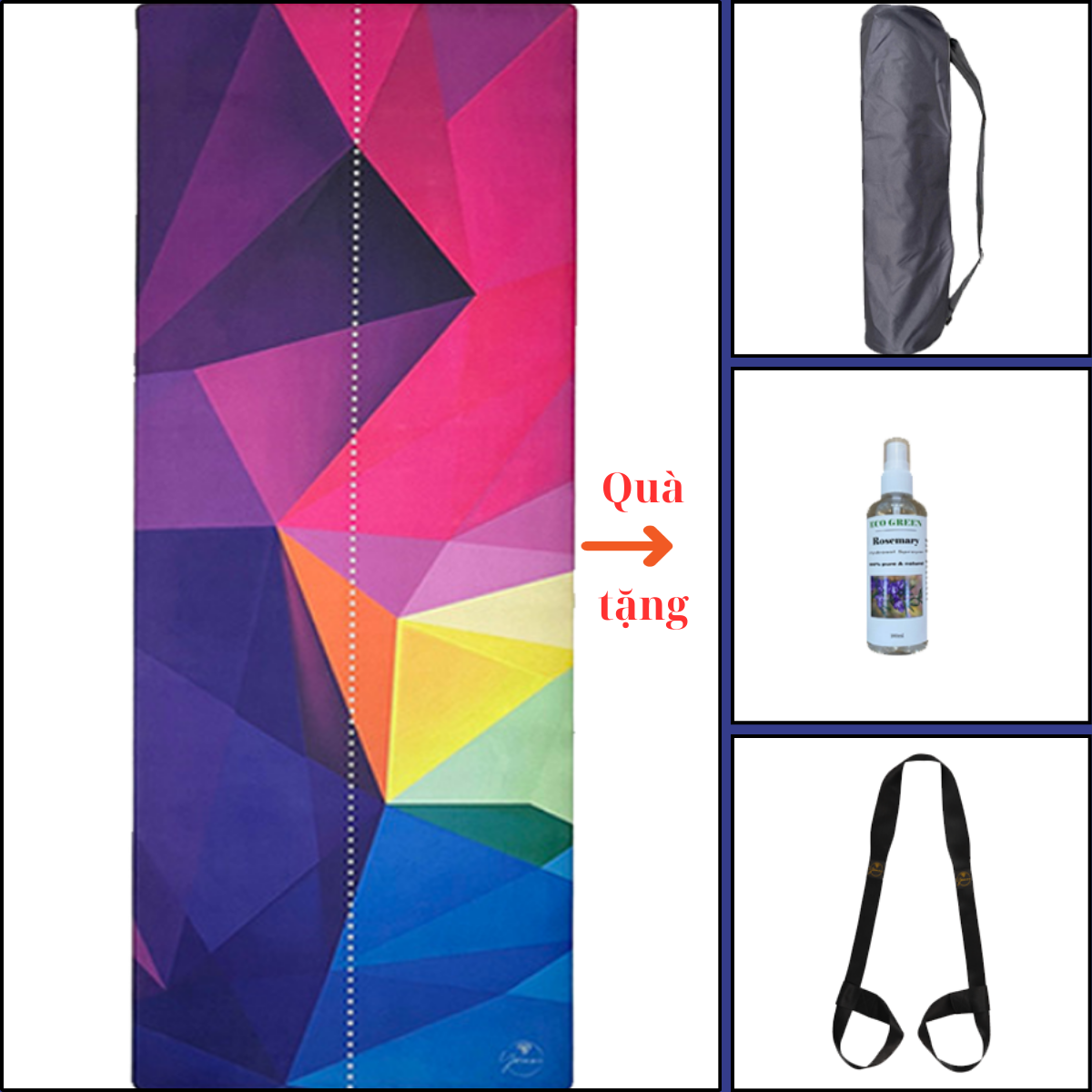 - Cất giữ và vận chuyển: Thảm có kèm theo túi đựng chuyên dụng và dây buộc thảm, dễ dàng mang theo tập ở các địa điểm khác nhau.