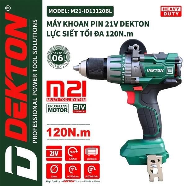 Thân Khoan Pin 3 Chức Năng Dekton M21-ID13120PLUS ĐƠN HÀNG CHỈ CÓ THÂN MÁY, CHƯA CÓ PIN VÀ SẠC NHÉ QUÝ KHÁCH – Đầu Cặp 13mm – Motor Brushless – Chân Pin Phổ Thông THÔNG