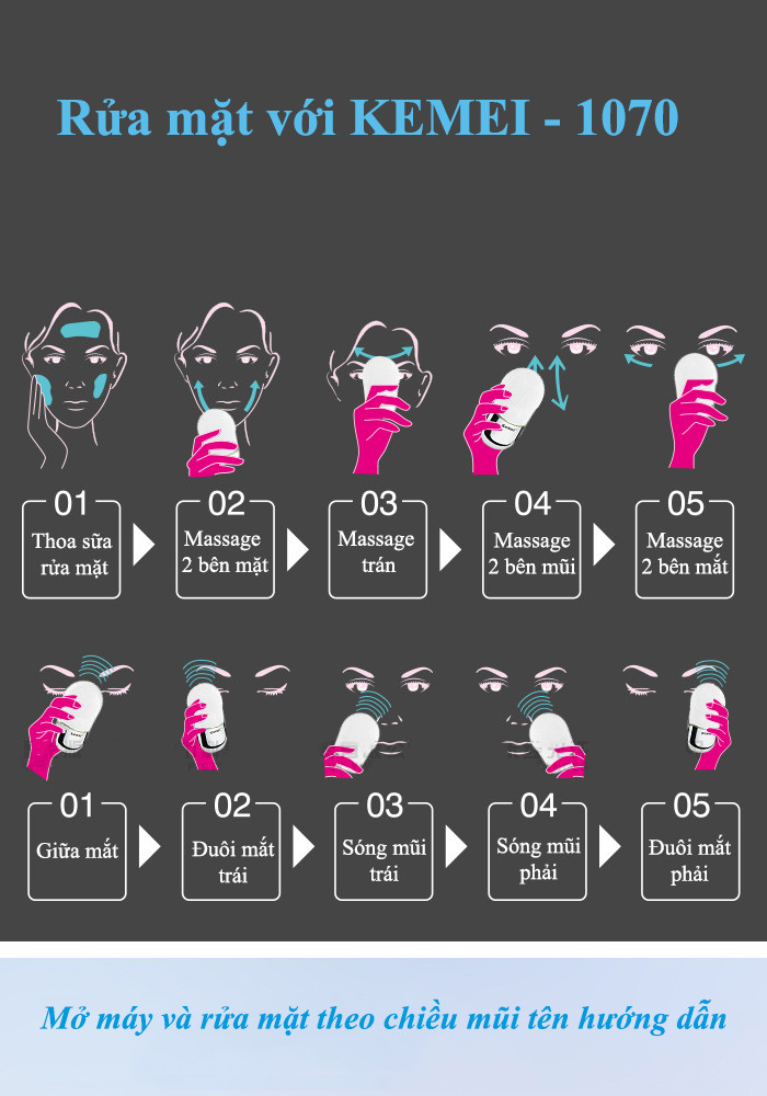 THANH LÝ NEW GIẢM SỐC 50% SỐ LƯỢNG CÓ HẠN Máy rửa mặt Kemei 1070 làm sạch da mặt, thúc đẩy hấp thụ dưỡng chất, tẩy trang hoàn hảo Ai ai cũng mong muốn