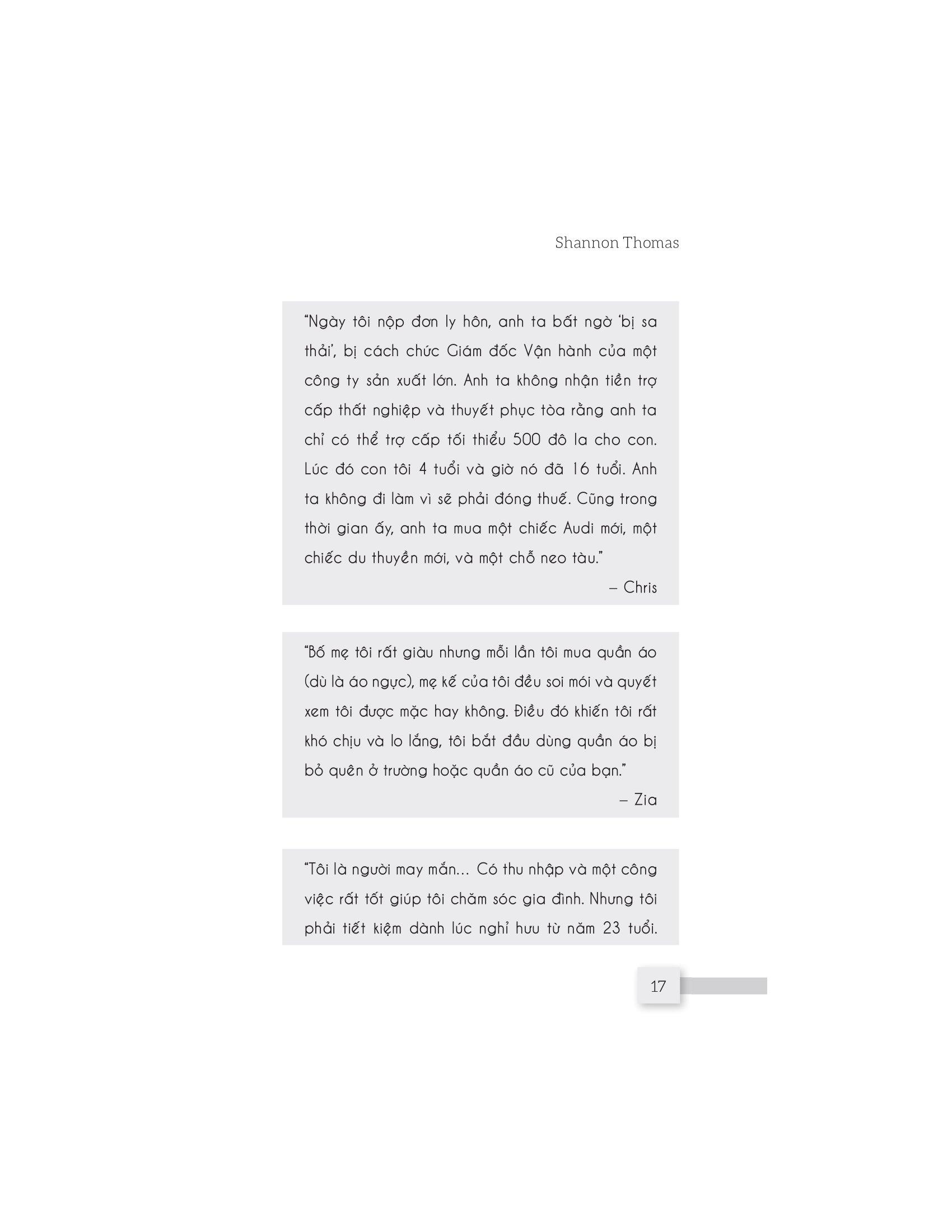 Cuốn sách “Thao túng về tiền” sẽ cho bạn cơ hội vén tấm màn che đậy và thấy được cuộc sống của những người bị tổn hại tài chính do những người thân thiết với họ gây ra. Nó cũng giúp bạn có được cái nhìn cụ thể và sâu sắc hơn về lạm dụng tài chính để nhận biết sớm, có hành động dứt khoát giúp bạn thoát khỏi hố sâu tâm lý và chữa lành những tổn thương tiềm ẩn.