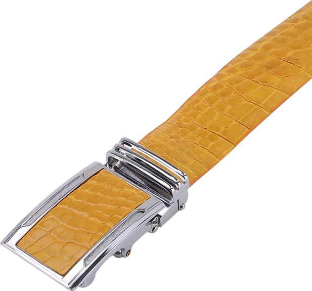 Thắt Lưng Nam Da Cá Sấu Gai Bụng Huy Hoàng HT4258 - Vàng nghệ là loại dây nịt được làm và xử lý công nghệ hiện đại từ da cá sấu thật 100%.