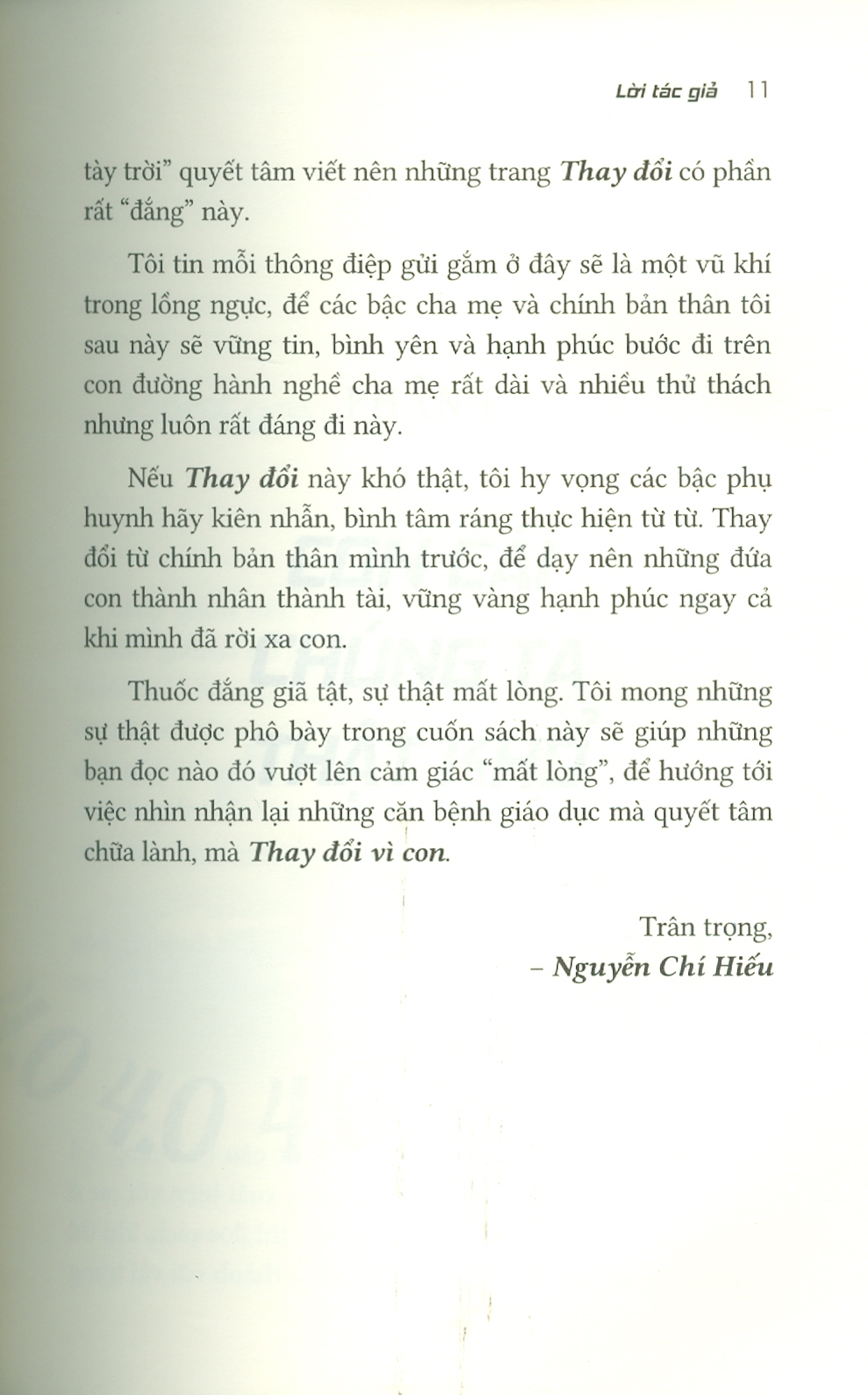 Thấu hiểu khao khát cháy bỏng đi tìm sự giáo dục ưu việt cho trẻ trong lòng các phụ huynh, bất chấp nhiều đắn đo do dự, tác giả Nguyễn Chí Hiếu vẫn quyết định