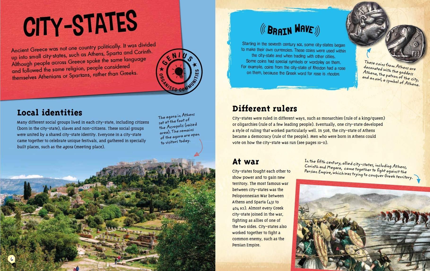 Which genius ideas and inventions began with the ancient Greeks? What did they develop that we use to this day? Find out how the ancient Greeks organised their society, trained their soldiers, used their ships for trade and transport and built their temples. Discover their brilliant developments in architecture, politics, art, medicine, theatre and sport that have influenced the way we live today.