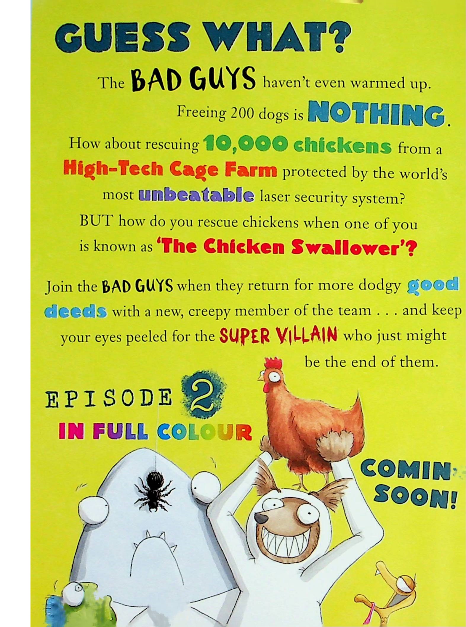 Mua tại TiktokThe first laugh-out-loud Bad Guys episode by award-winning creator Aaron Blabey, now in full colour. They sound like the Bad Guys, they look like the Bad Guys … and they even smell like the Bad Guys. But Mr Wolf, Mr Piranha, Mr Snake and Mr Shark are about to change all of that – whether you want them to or not! Mr Wolf has a daring plan for the Bad Guys’ first good mission. The gang are going to break 200 dogs out of the Maximum Security City Dog Pound. Will Operation Dog Pound go smoothly? Will the Bad Guys become the Good Guys? And will Mr Snake please stop swallowing Mr Piranha?