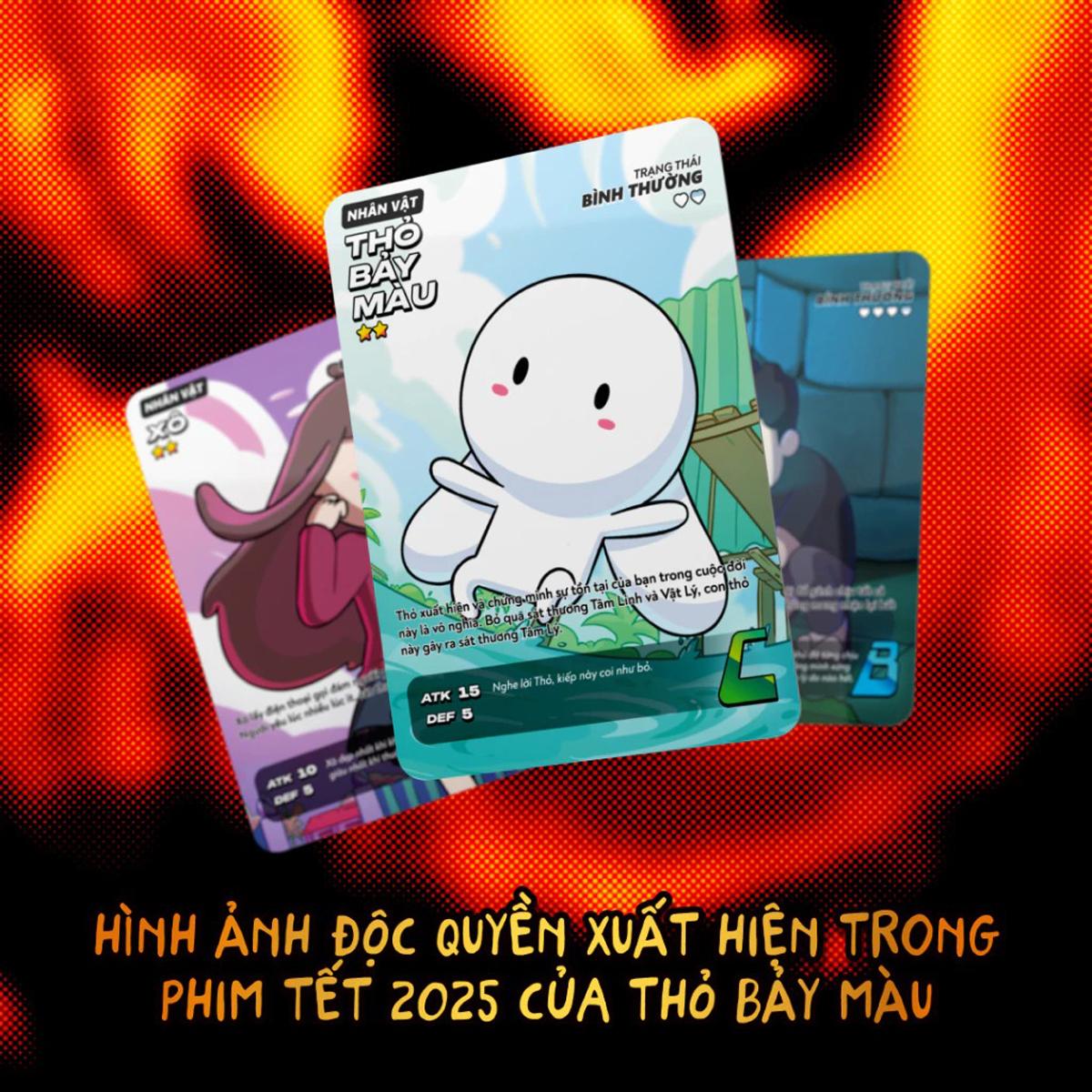 Card Collection Thỏ 7 Màu: Mắt đo phước nghiệp là sự kết hợp đầu tiên giữa Thỏ 7 Màu và Ducky Card. Bộ thẻ gồm 15 thiết kế đặc biệt với hình ảnh các nhân vật từ bộ phim Tết 2025 của Thỏ 7 Màu: Thỏ 7 Màu và Mắt Đo Phước Nghiệp.