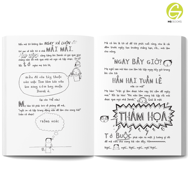 Truyện được trình bày dưới dạng nhật ký minh họa tay, kể lại những chuyện “dở khóc dở cười” của Tom ở trường học, trong gia đình và nhóm bạn thân – với giọng kể cực kỳ “teen”, gần gũi và duyên dáng.