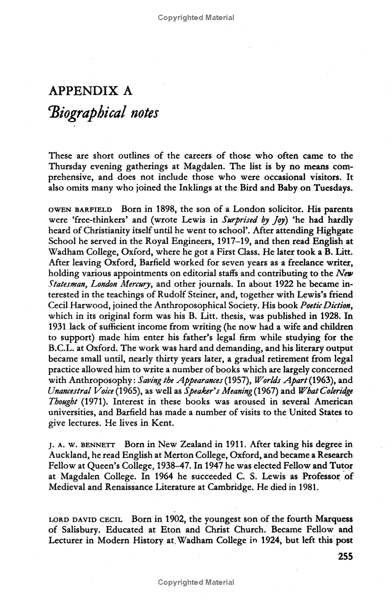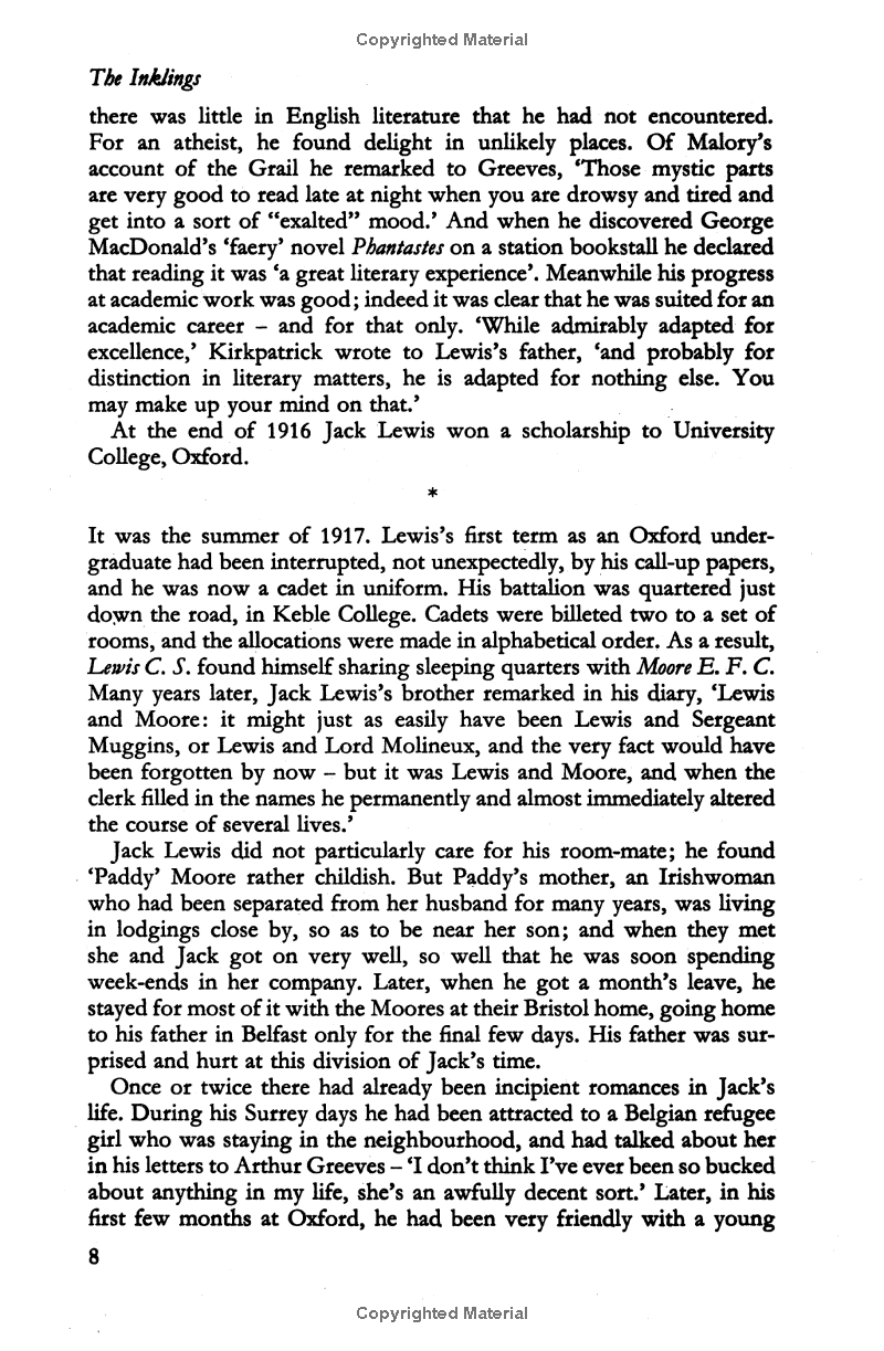 C.S. Lewis and J.R.R. Tolkien first introduced The Screwtape Letters and The Lord of the Rings to an audience in this company and Charles Williams, poet and writer of supernatural thrillers, was another prominent member of the group.