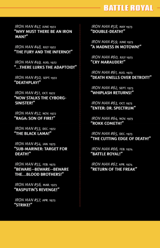 Tony Stark’s life takes a turn for the extraordinary when his ESP-empowered fiancée, Marianne Rodgers, is tormented by visions of Iron Man’s death. As if that wasn’t drama enough, the Stark Industries’ Board of Directors vies to force Tony from his company as protesters riot at the gates. Then, Iron Man goes cosmic with the first appearances of Thanos, Drax the Destroyer and Moondragon. Next, a gauntlet of classic villains—from the Mandarin to Whiplash—push our hero to his limits. It stands against the backdrop of an increasingly tense love triangle between Tony Stark, Pepper Potts and Happy Hogan. An Avenger vs. Avenger battle and Roy Thomas and Barry Windsor-Smith’s stunning retelling of Iron Man’s origin top off this epic era!