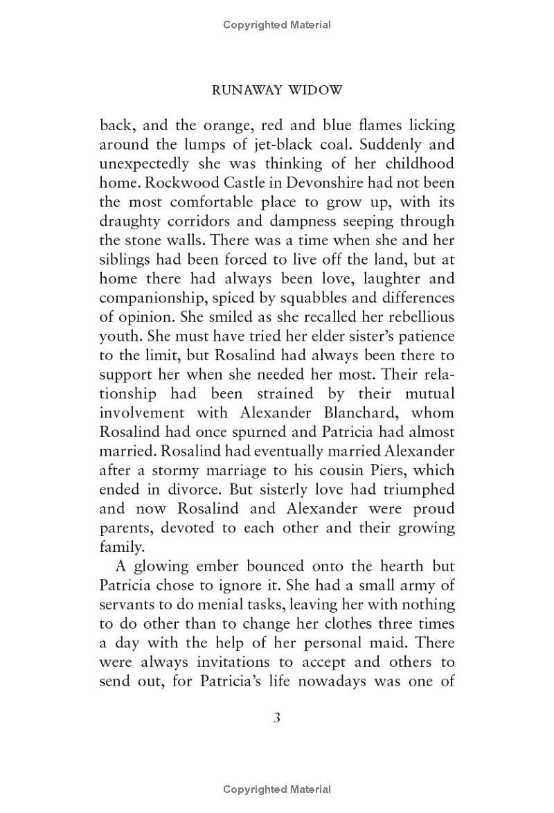 After the sudden death of her husband, Patricia Greystone is left with nothing, and at twenty-four, she finds herself a penniless widow. As the youngest child of a large family, she has always been headstrong and proud – so she’s determined not to return to her family cap in hand. Instead she strikes out on her own.