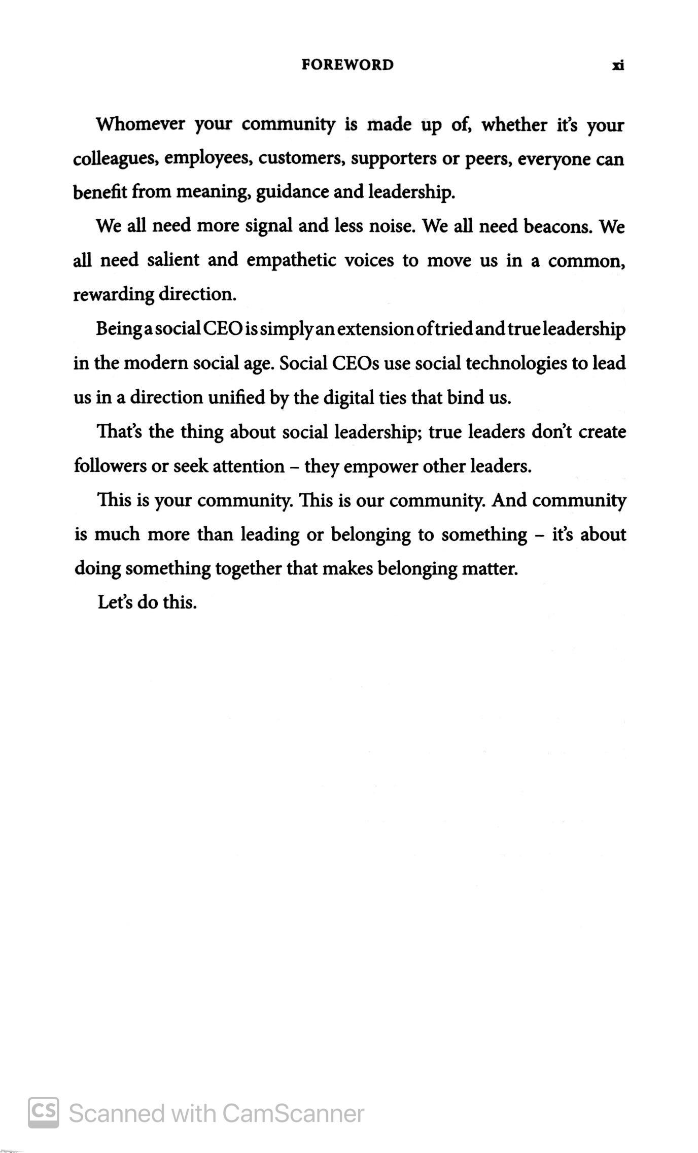 The Social CEO sets out to educate and inspire senior leaders to embrace the Social Age, teaching them the hows and whys of utilising social media in order to make them stronger leaders. Social CEOs can effectively encourage engagement from their employees as well as other stakeholders and customers; they're better able to communicate their organization's objectives and values, gauge the climate in which they operate and improve their brand image.