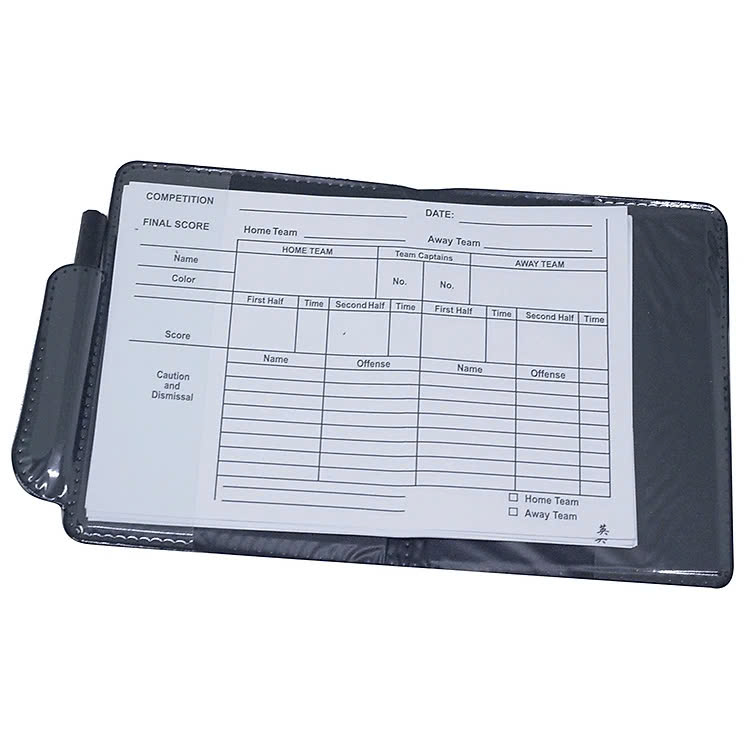 Được thiết kế như một cuốn số rất tiện lợi gồm cả giấy kẻ ô sẵn lẫn bút để trọng tài ghi chép sau khi rút thẻ.