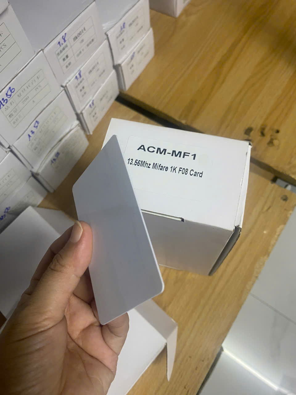 Mua tại TiktokThẻ từ tần số 13.56Mhz loại mỏng (Mifare) - Không sao chép/ copy được Thẻ cảm ứng mỏng là loại là thẻ dùng từ tính để tích hợp với đầu đọc thẻ hoặc khóa cửa cảm ứng Thẻ cảm ứng thường được sử dụng như thẻ IC ( lưu và xóa) , thẻ nhân viên, thẻ thang máy, thẻ xe…rất tiện lợi cho việc kiểm soát và tiết kiệm thời gian. Thông số kỹ thuật : - Sử dụng tần số: 13.56 KHz - Đọc không tiếp xúc.