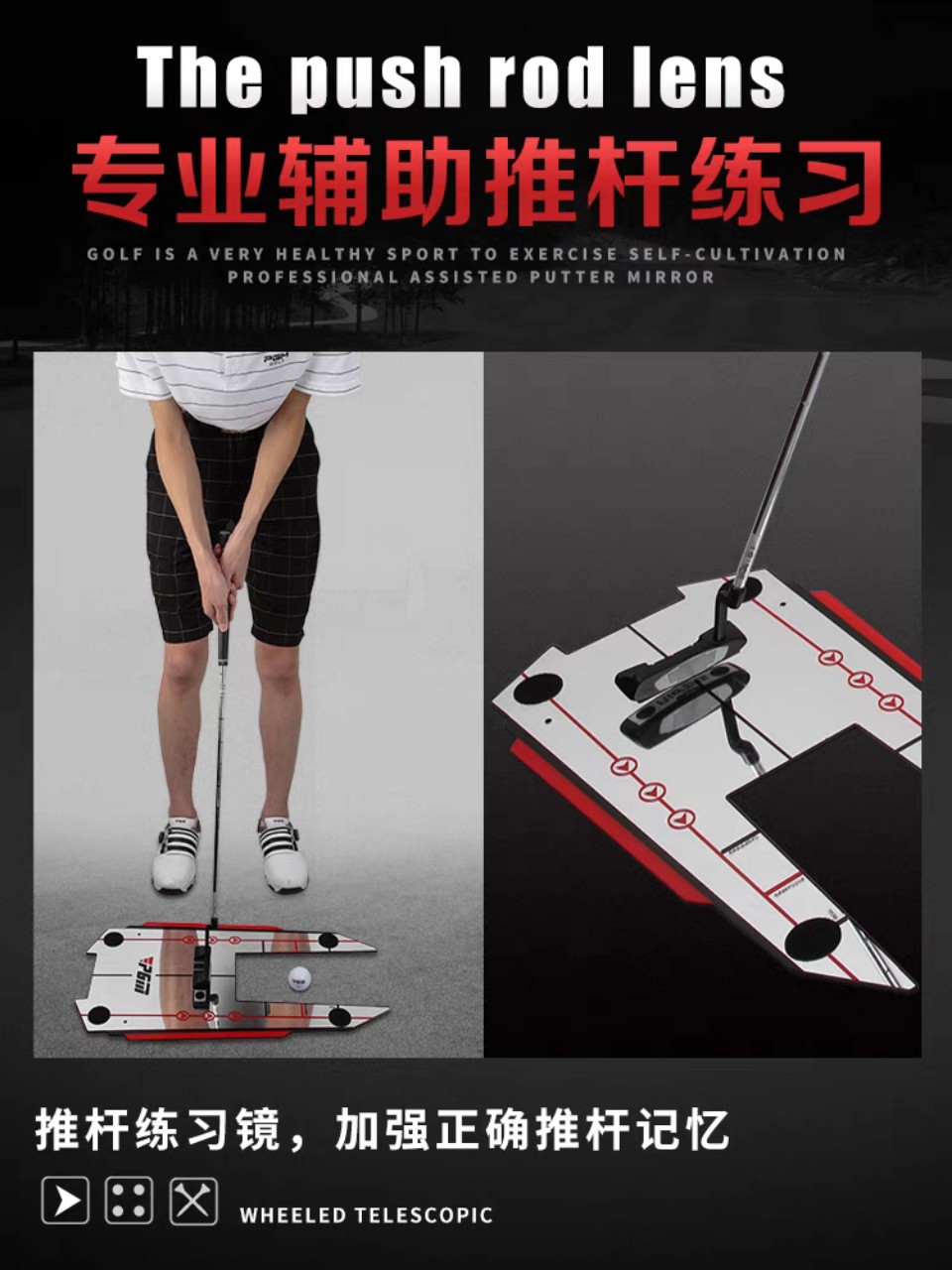- Thiết bị hỗ trợ tập Golf là một chiếc gương nhỏ tuyệt vời giúp định hướng đúng tư thế Swing/ Putt. Đây là 1 dụng cụ hỗ trợ tập luyện không thể thiếu với mỗi Golfer.