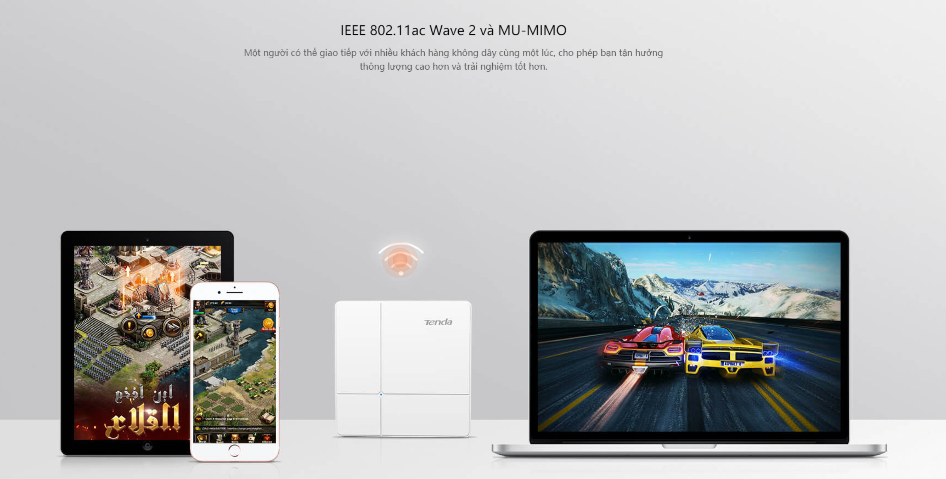 Tenda I24 Giải pháp mạng Gigabit mới: Phủ Sóng upto 300m2 (ngang), upto 100user dùng cùng lúc, Công nghệ Gigabit đôi giúp truy cập với băng thông mượt mà, sóng WAVE2 kết nối đa phương tiện cùng lúc cho trãi nghiệm không bị gián đoạn, Cổng 1000M cho phép trãi nghiệm internet nhanh nhất