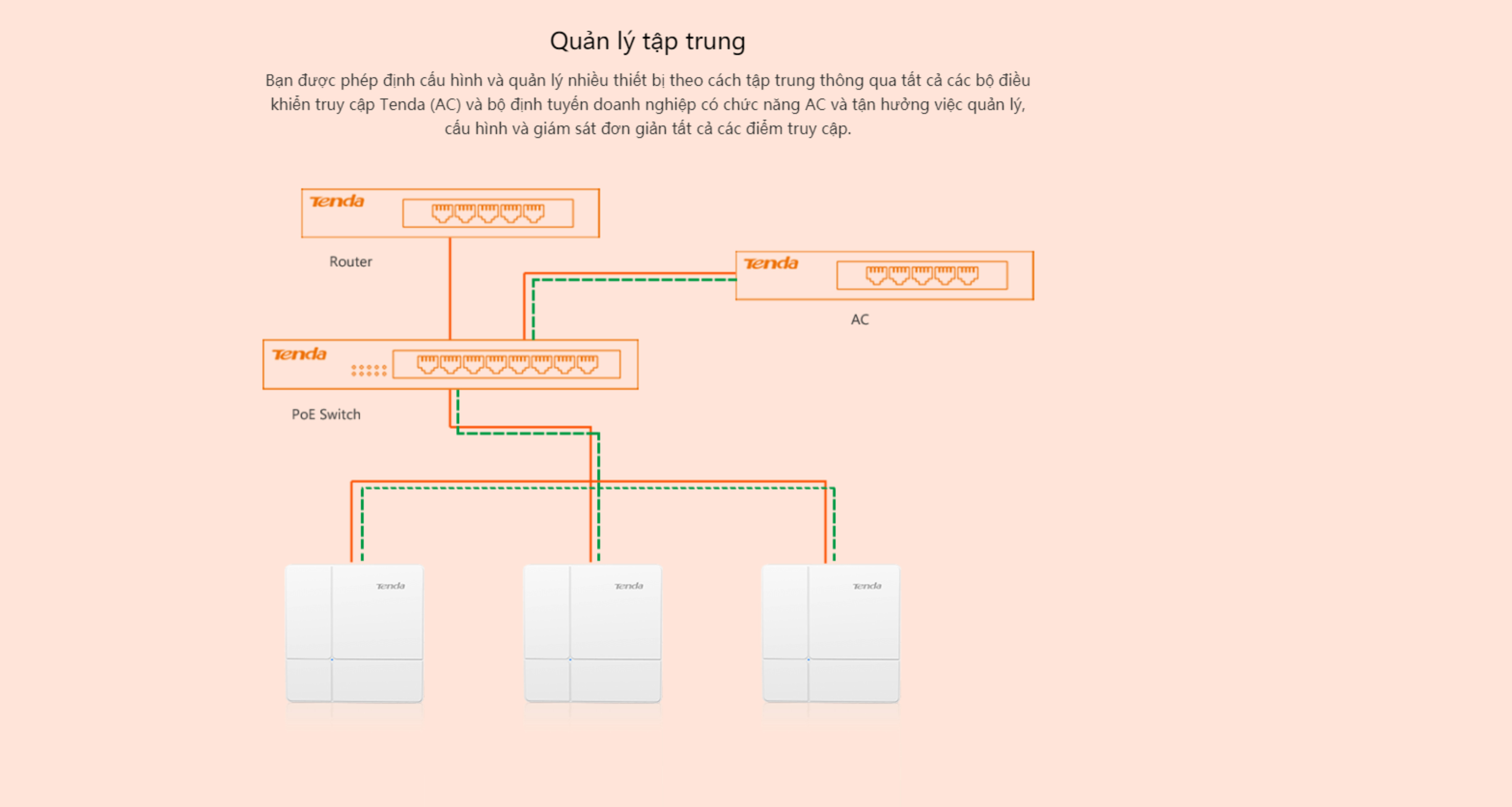 Tenda I24 là điểm truy cập băng tần kép gigabit tương thích với IEEE 802.11ac Wave 2 và cung cấp tốc độ dữ liệu đồng thời lên tới 1167 Mbps. Được hỗ trợ bởi công nghệ MU-MIMO, cho phép bạn tận hưởng trải nghiệm tốt hơn. Và ăng-ten đa hướng tích hợp mở rộng phạm vi phủ sóng không dây của một AP. Ngoài ra, bạn được phép điều chỉnh công suất phát của nó theo yêu cầu khi sử dụng giao diện người dùng web và sử dụng thiết bị tìm nguồn cung cấp PoE tương thích với chuẩn IEEE 802.3at để cung cấp năng lượng cho nó, đạt được nguồn điện đường dài mà không làm xáo trộn mạng lưới hiện tại của bạn. Bạn cũng được phép sử dụng bộ điều khiển truy cập Tenda (AC) để định cấu hình và quản lý nhiều i24 theo cách tập trung.