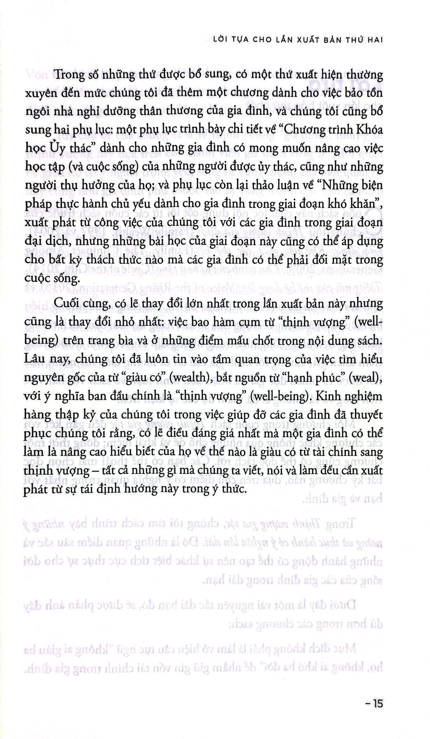 Mua tại TiktokThịnh Vượng Gia Tộc (Bìa mềm) Thịnh vượng gia tộc giúp chúng ta phát triển, duy trì và quản lý tài sản qua các thế hệ. Cuốn sách là tập hợp những hướng dẫn được cập nhật và mở rộng để thay đổi cách bạn nghĩ về sự giàu có và di sản của m.ình. Cuốn sách còn cung cấp câu trả lời bạn cần cùng với hướng dẫn và chiến lược để giữ nguyên khối tài sản của gia đình bạn. Thịnh vượng gia tộc cung cấp tư duy mới nhất về thịnh vượng, những ý tưởng và thực hành có ý nghĩa lâu dài để các gia đình duy trì, phát triển và quản lí tài sản qua các thế hệ. Cuốn sách là tập hợp những hướng dẫn được cập nhật và mở rộng để thay đổi cách chúng ta nghĩ về thịnh vượng và di sản của m.ình. Thịnh vượng đích thực vượt lên trên tiền bạc đơn thuần, bao gồm 6 loại gia sản: