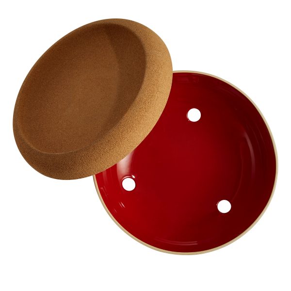 Thiết kế thố bảo quản thông minh với 2 phần (phần gốm và phần nắp bần) để bảo quản trái cây và các loại củ khô, không thích hợp để tủ lạnh