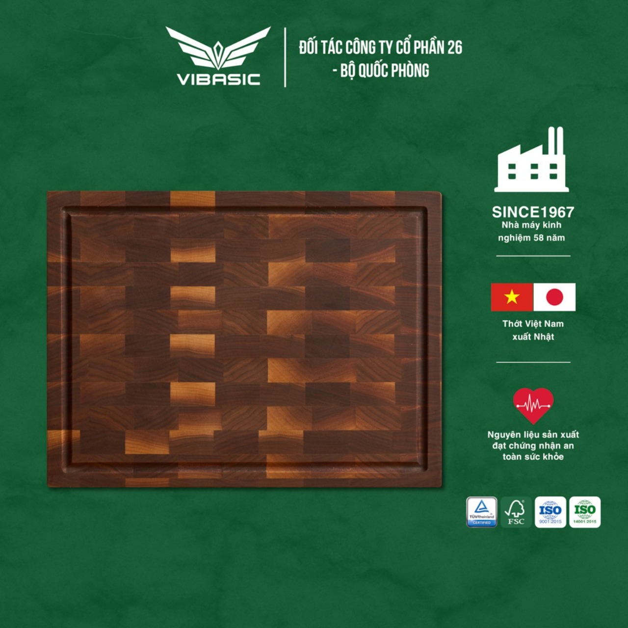 ✨Thớt gỗ óc chó Vibasic kích thước 40x30x3.8cm, thái băm chặt đa năng, kèm hộp quà tặng cao cấp - Hàng chính hãng Bộ Quốc Phòng