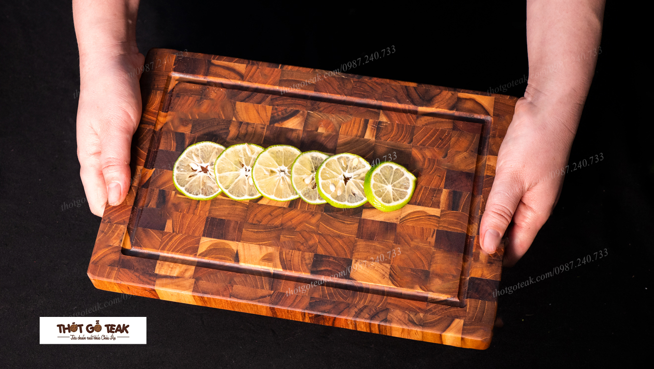 Thớt gỗ teak bền đẹp - Trải nghiệm thớt teak CNT04