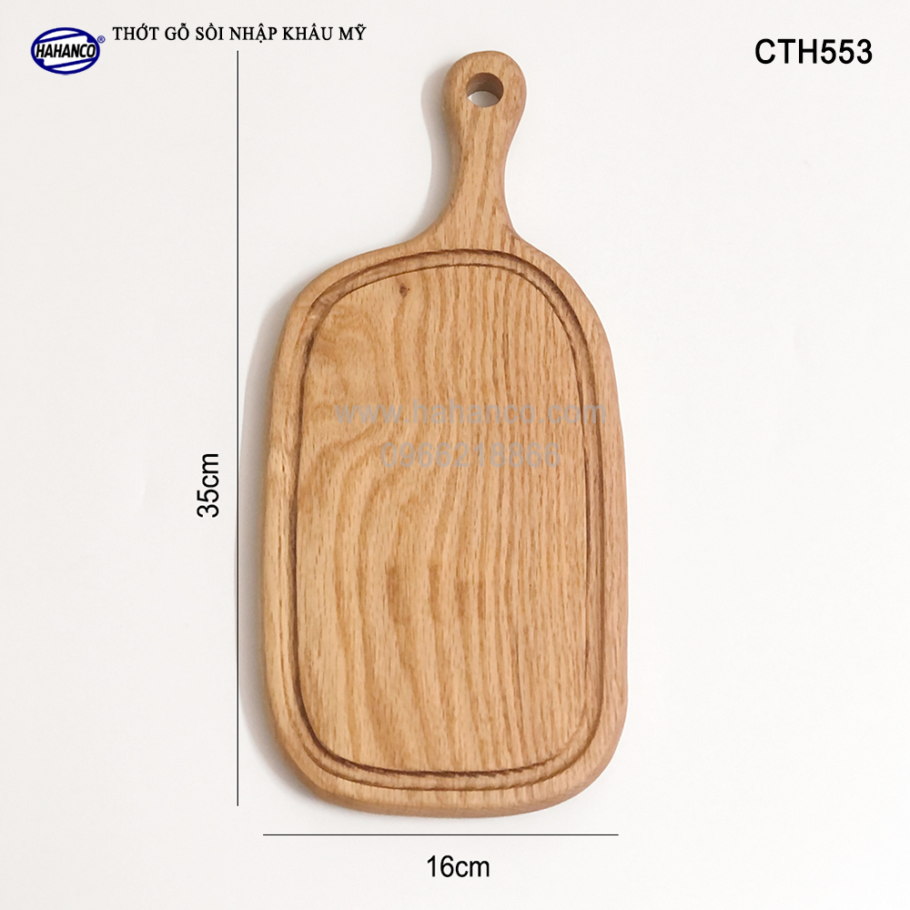 Thớt gỗ chữ nhật có lỗ treo - Size nhỏ 31 x 21 x 3.3 - Gỗ Đức Thành - 06471 - Đạt chứng nhận vệ sinh an toàn thực phẩm Thớt gỗ chữ