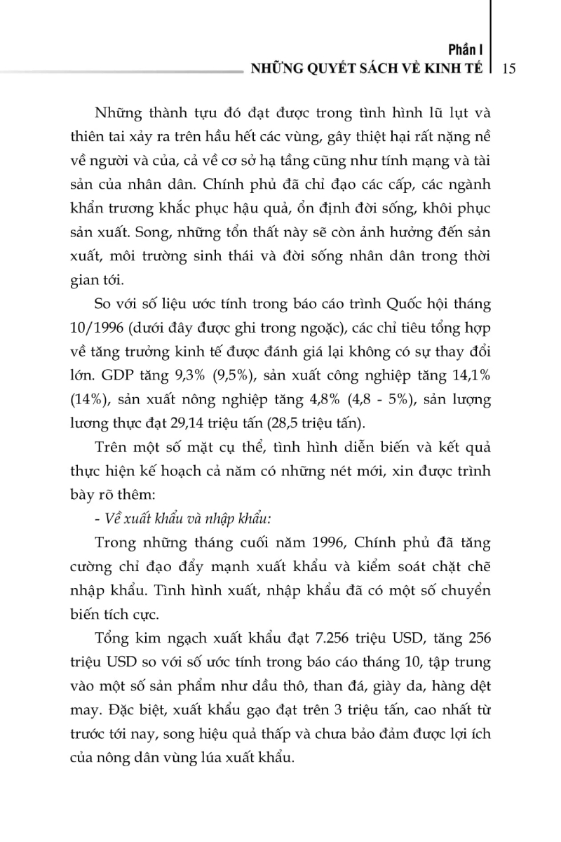 Cuốn sách gồm 3 phần, mỗi phần gồm các bài được sắp xếp theo chủ đề và trình tự thời gian, diễn biến của sự kiện: Những quyết sách về kinh tế; Những quyết sách