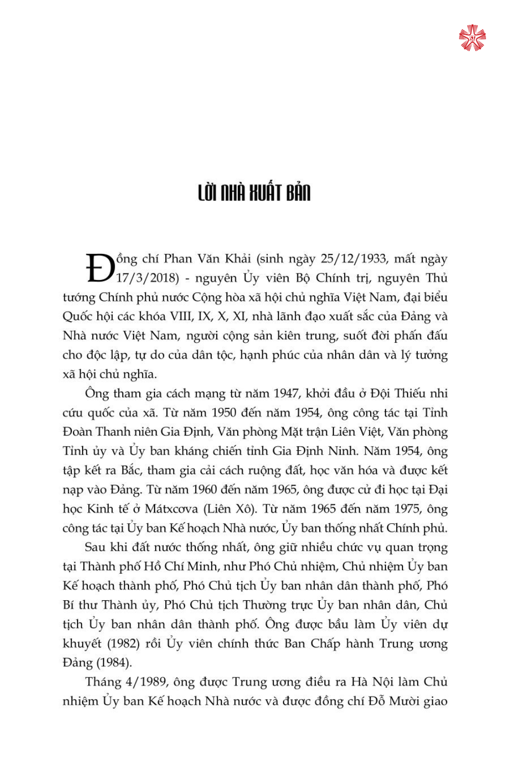 Nhằm làm rõ những quyết sách chiến lược và đóng góp của đồng chí Phan Văn Khải vào thành tựu chung của đất nước, Nhà xuất bản Chính trị quốc gia Sự thật tái bản cuốn sách Thủ tướng Phan Văn Khải và những quyết sách chiến lược (Tuyển chọn tài liệu lưu trữ).