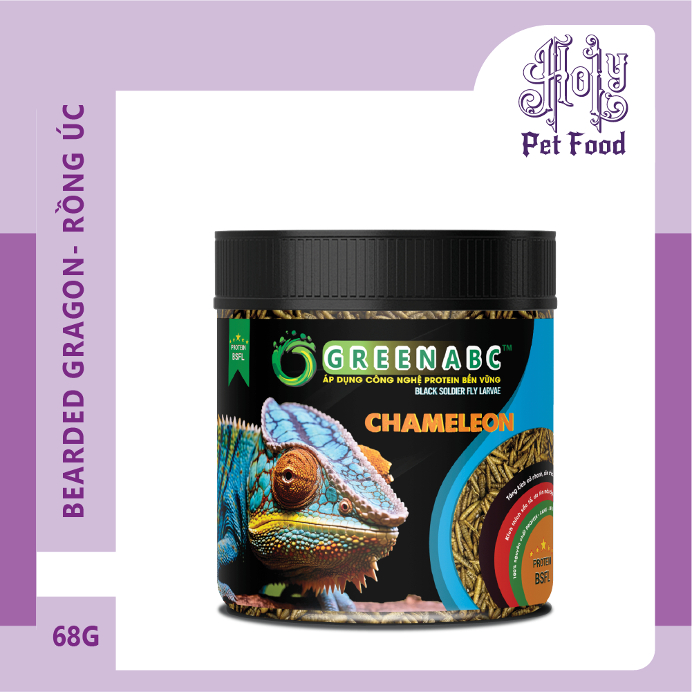 THỨC ĂN TẮC KÈ HOA CHAMELEON - BỔ SUNG DINH DƯỠNG PROTEIN 44.9%, CANXI 1.33%, LIPID 20.1% Sản phẩm GREENABC cung cấp các giá trị dinh dưỡng bền vững cho thú cưng, giúp cho