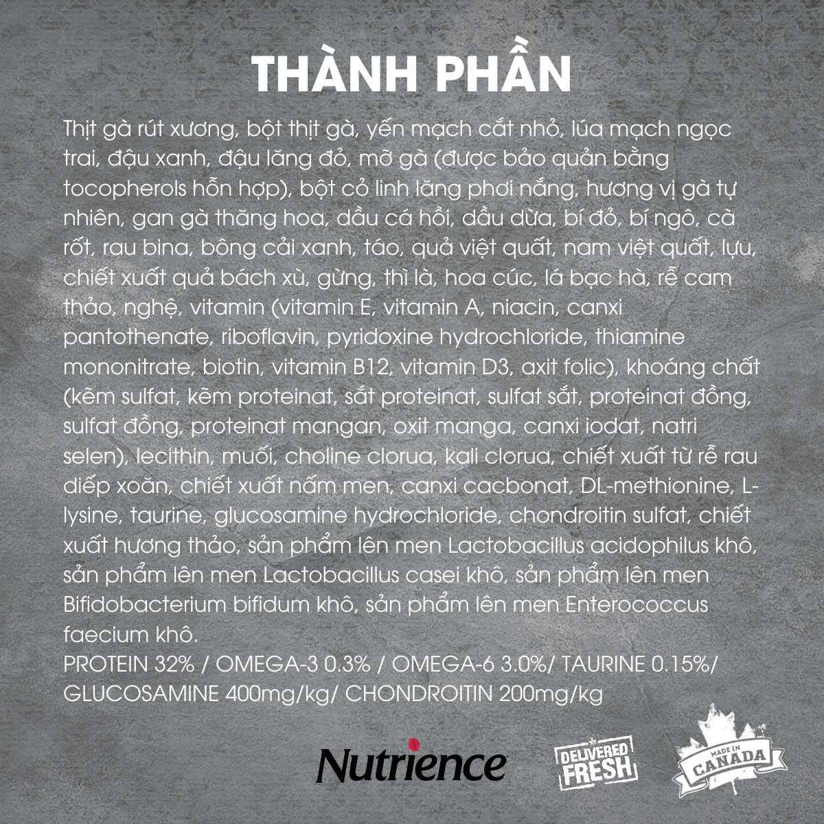 - Thành Phần Nguyên Liệu: Xuất xứ Canada HSD: 12 tháng từ ngày sản xuất trên bao bì