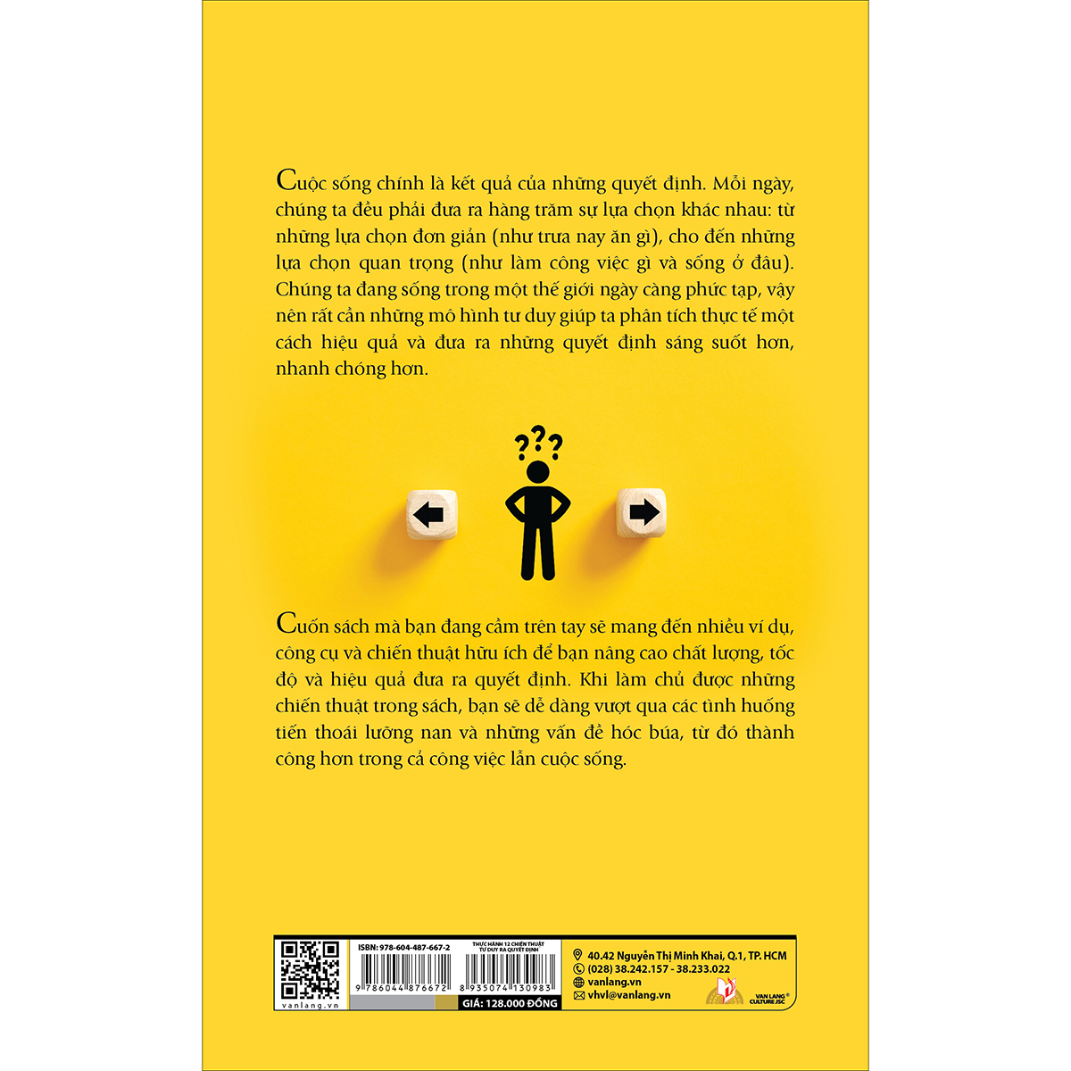 Cuốn sách mà bạn đang cầm trên tay sẽ mang đến nhiều ví dụ, công cụ và chiến thuật hữu ích để bạn nâng cao chất lượng, tốc độ và hiệu quả đưa ra quyết định. Khi làm chủ được những chiến thuật trong sách, bạn sẽ dễ dàng vượt qua các tình huống tiến thoái lưỡng nan và những vấn đề hóc búa, từ đó thành công hơn trong cả công việc lẫn cuộc sống.
